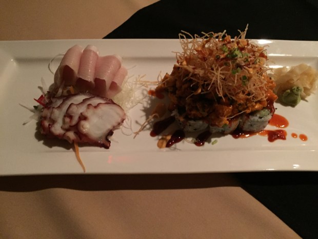 On the left, we have the purists with hamachi toro and tako sashimi. On the right, the  KISS OF DEATH. Choose your level of spice on this specialty roll to even out the frigid temperatures.