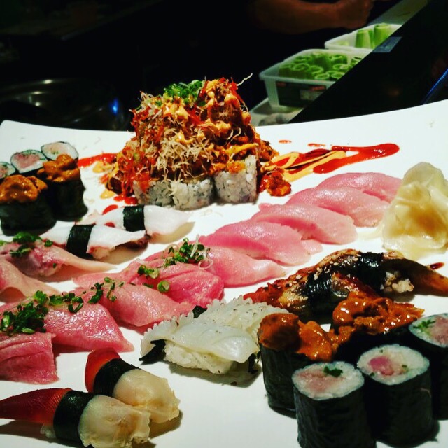 New year’s resolutions are coming up, everyone! If one of your goals looks something like this giant plate of sushi, that would be considered totally appropriate. #nye #resolutions #woojungsushi #sushi #sashimi #hamachi #nigiri #yellowtail #iphone #supportlocalbusiness