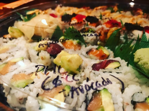Our take-out orders are personal. And specifically diagrammed. Because details matter. #woojungsushi #details #grammar #diagram #food #foodstagram #takeout #pickup #byob #dinner #lunch #byob #whitetigerroll #salmon #avocado #phillyroll #phillyfood #phillysushi
