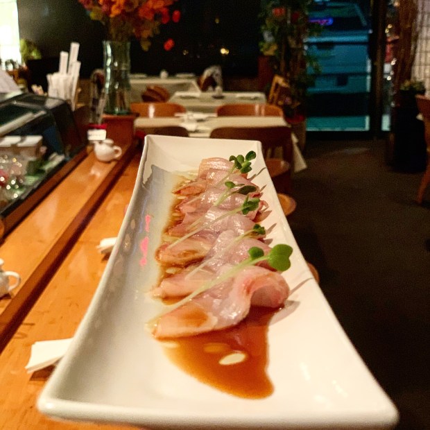 Kanpachi Carpaccio December 14, 2018 Truffle oil lovers, unite! Our Kanpachi Carpaccio is your next favorite thing. Ask for the special (off-menu) this weekend! Share this: Click to share on X (Opens in new window) X Click to share on Facebook (Opens in new window) Facebook Like Loading... Related